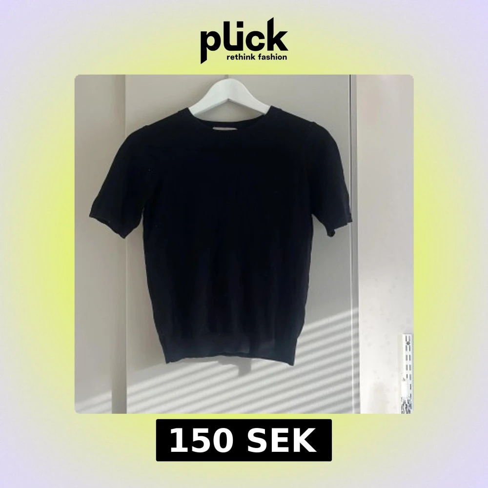 En svart stickad topp med korta ärmar. Andvänd någon gång men inget som syns, den är lite knottrig under ärmarna men kan enkelt lösas med en knoppmaskin! Jag kan lösa om det skulle behövas.
