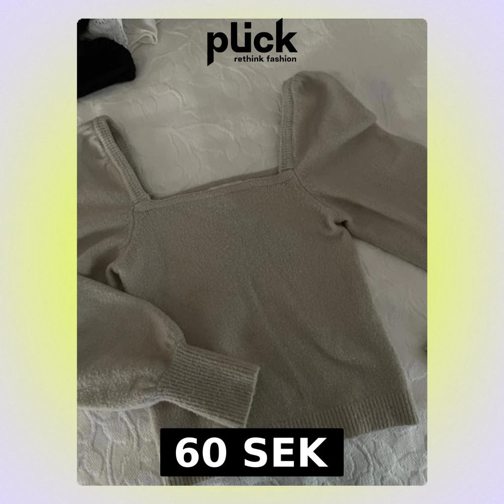 Snygg beige stickad tröja från H&M i storlek XS. Tröjan har puffiga långärmar och fyrkantig halsringning som ger en trendig vibe. Ribbstickade muddar vid ärmslut och nederkant. Perfekt för dig som gillar stilrena och mjuka plagg.