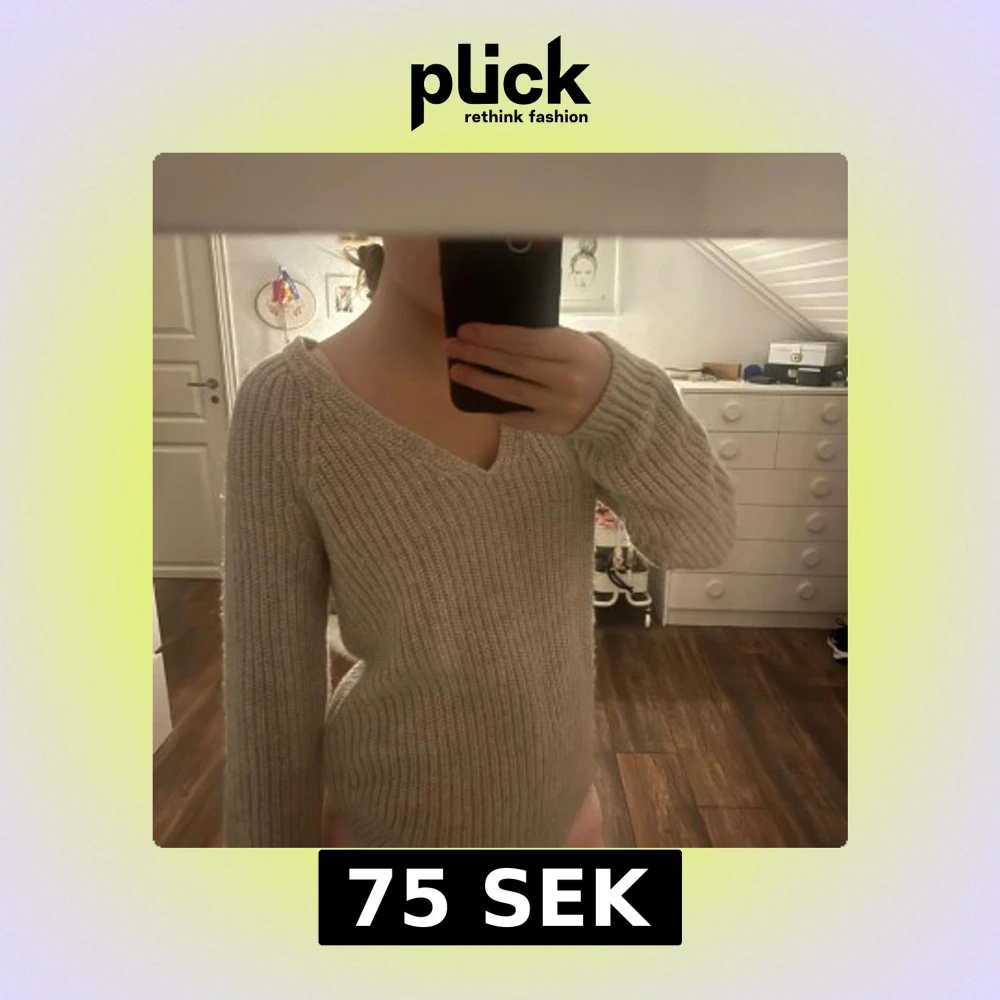 Säljer en beige stickad tröja från H&M Basic i storlek XS. Tröjan har ribbad struktur, v-ringad hals och långa ärmar. Perfekt för dig som gillar enkel och stilren design med mjukt material som känns skönt mot huden. Säljer eftersom den inte kommer till användning🫶