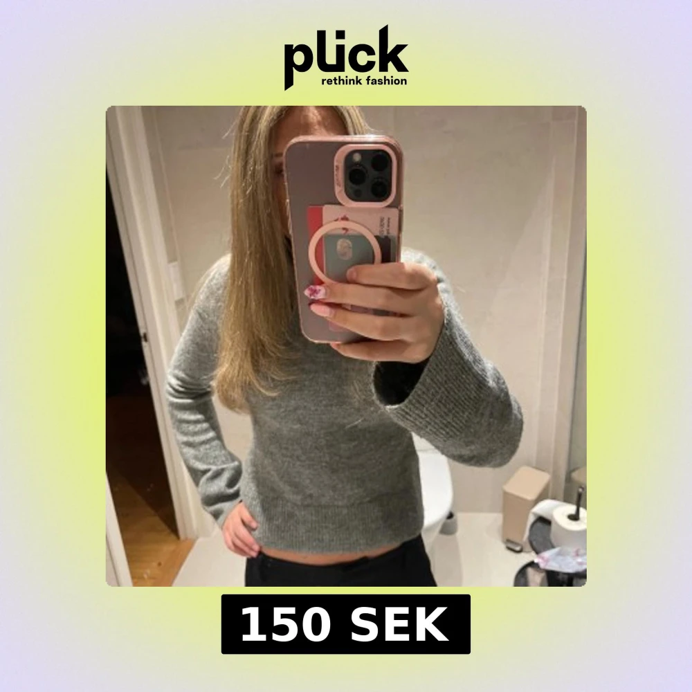 Jätte fin mörkgrå stickad tröja från H&M. Figursydd vid midjan och utsvänga ärmar🩷