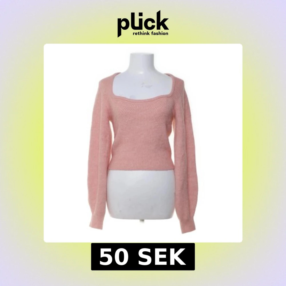 Säljer en ljusrosa ribbad tröja med lång ärm och fyrkantig ringning.