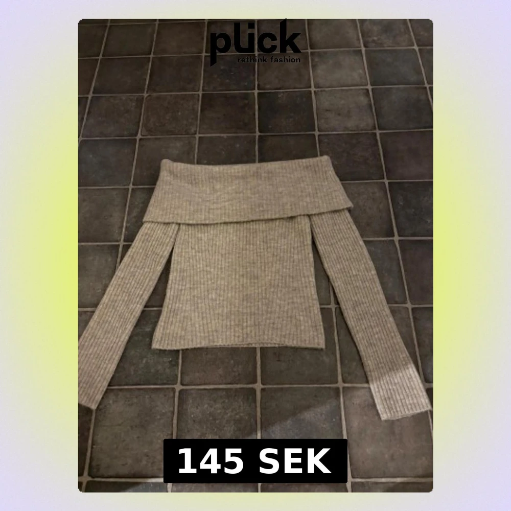 Säljer en beige stickad tröja från H&M i storlek XS. Tröjan har ribbad struktur och en bred offshoulder-krage som ger en snygg och chill vibe. Långärmad och mjuk, perfekt för att hålla sig varm under kyliga dagar.