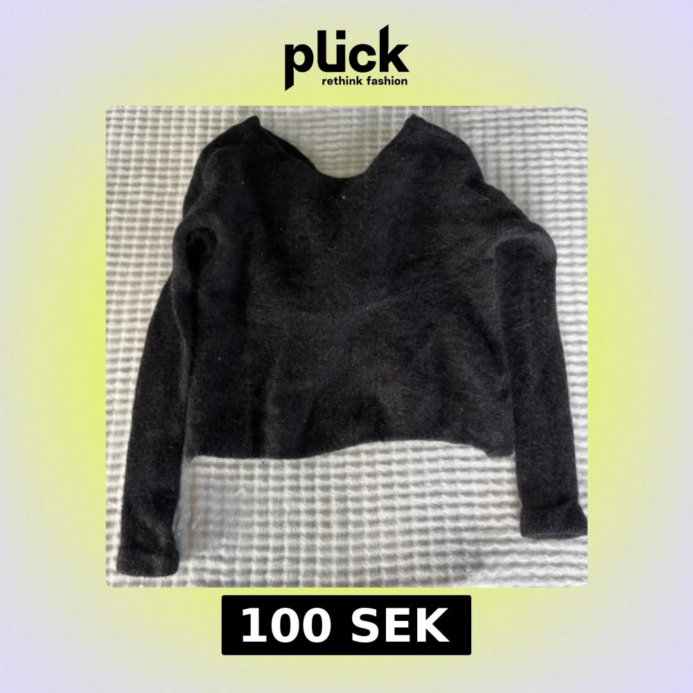 Mysig svart stickad tröja från H&M i alpackablandning. Tröjan har lång ärm och en snygg omlottdetalj framtill som ger en cool twist. Perfekt för lager-på-lager och funkar till både jeans och kjol.