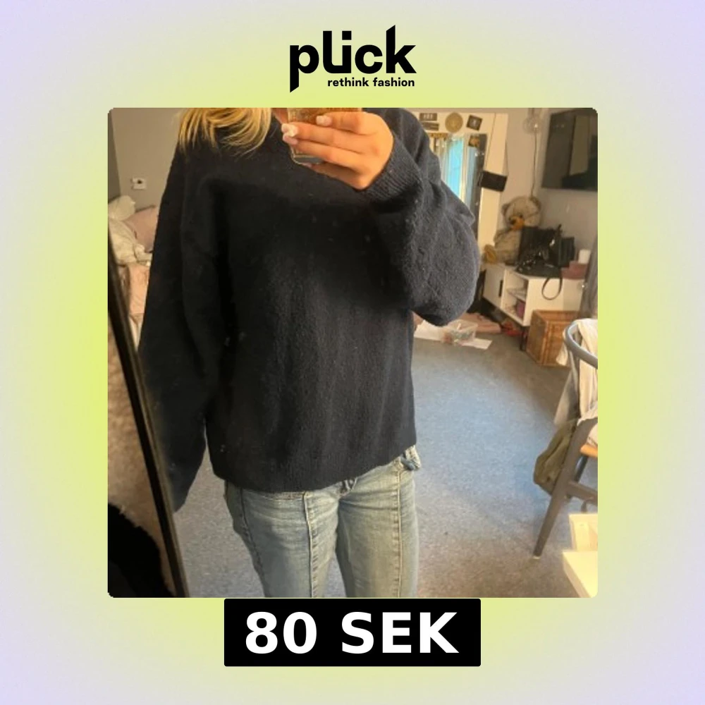 Mysig mörkblå stickad tröja från H&M i storlek XS. Tröjan har en enkel och klassisk design med rund halsringning och långa ärmar. Perfekt för lager-på-lager och chill dagar. Passformen är lite loose och materialet känns mjukt mot huden.