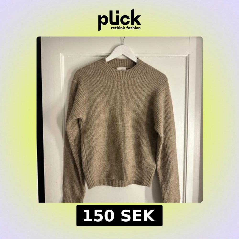 Mysig beige stickad tröja från H&M i storlek XS. Tröjan har ribbad struktur, rund halsringning och långa ärmar. Perfekt för lager-på-lager och chill höst- och vinterstil. Pris kan diskuteras