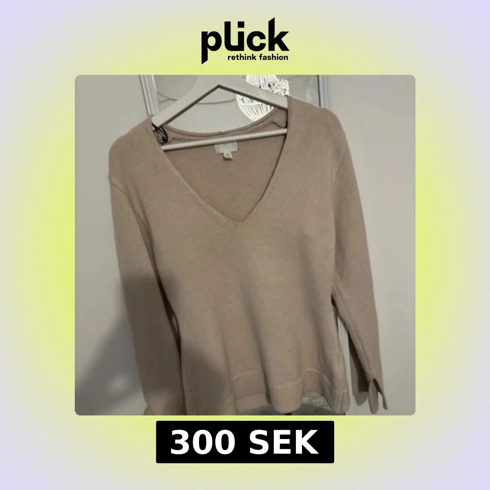 Supermjuk beige stickad tröja från H&M i storlek XS. Tröjan har v-ringning, långa ärmar och breda ribbade muddar vid ärmslut och nederkant. Perfekt för lager-på-lager och chill vibes.