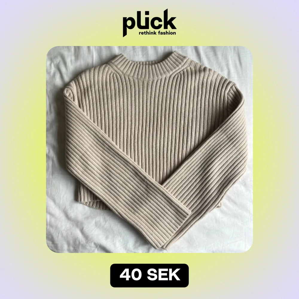 beige stickad tröja som är lite kortare och har tjockare krage🌸