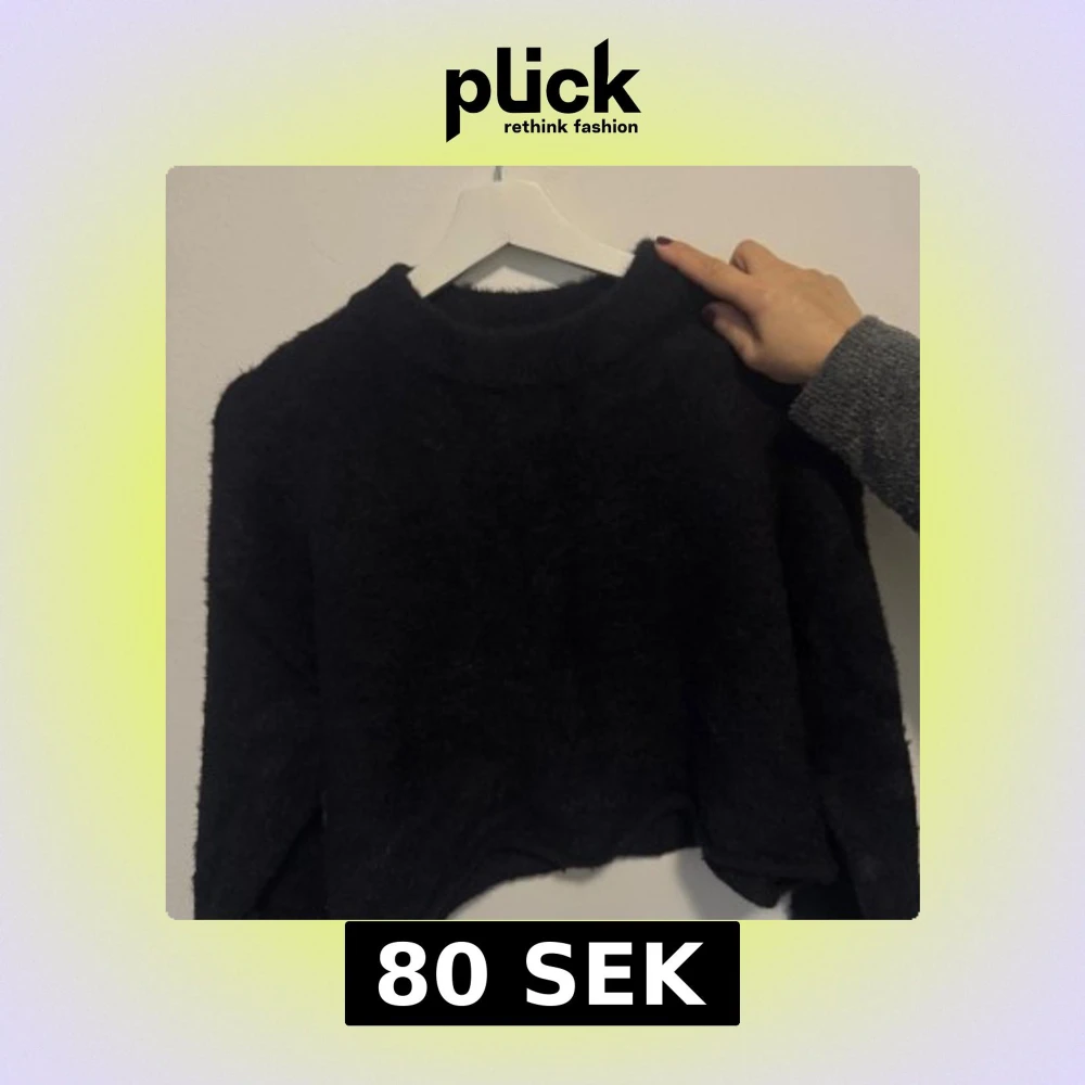 Mysig svart stickad tröja med fluffig yta och långärmad modell. Tröjan har en enkel rund halsringning och är lite croppad i passformen, perfekt för att ge en chill vibe till din outfit. Passar dig som gillar basic men ändå vill ha något extra mjukt och snygg.