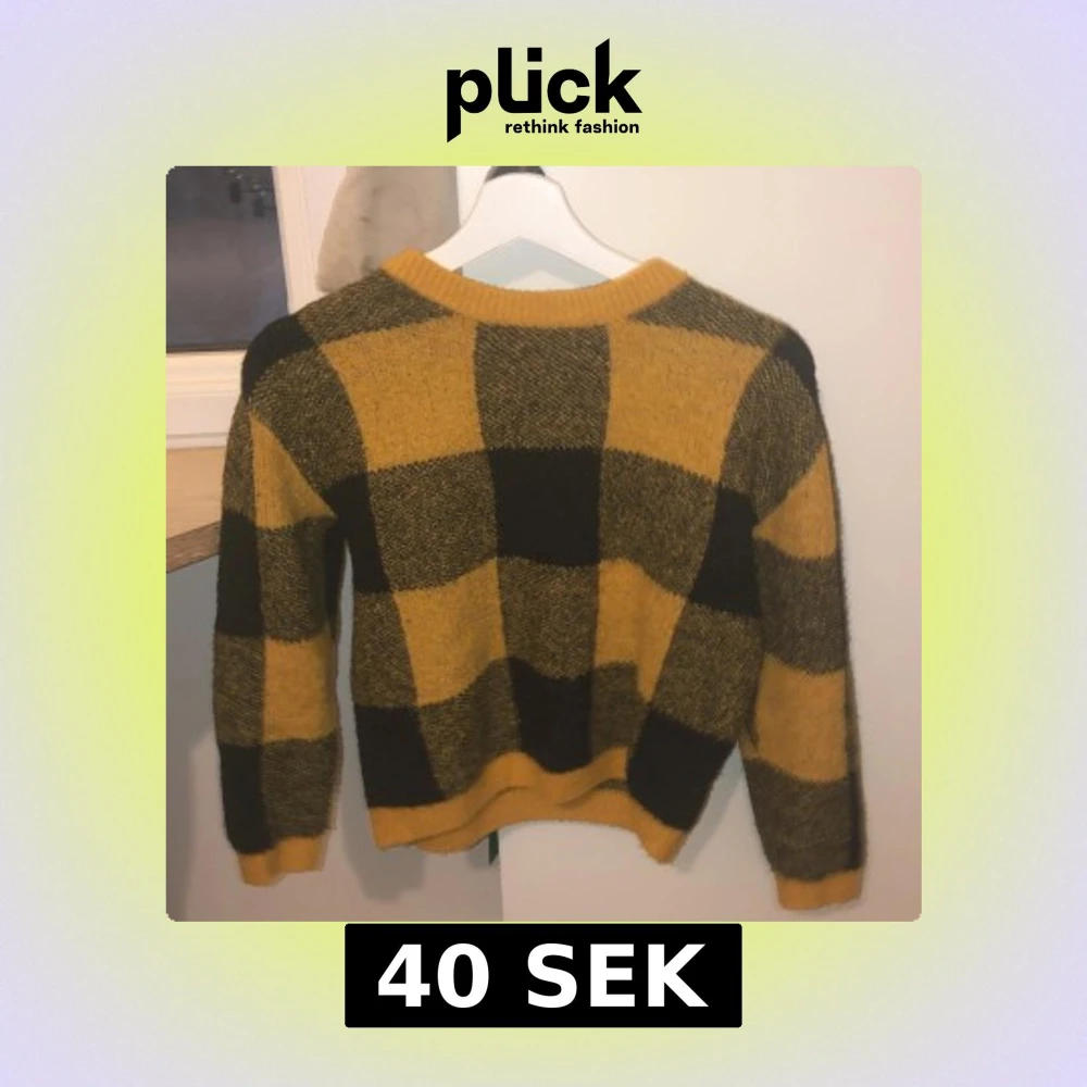 Säljer en cool gul och svart rutig tröja från H&M. Den har en klassisk rund hals och långa ärmar. Perfekt för att hålla sig varm och stilren under kyligare dagar.
