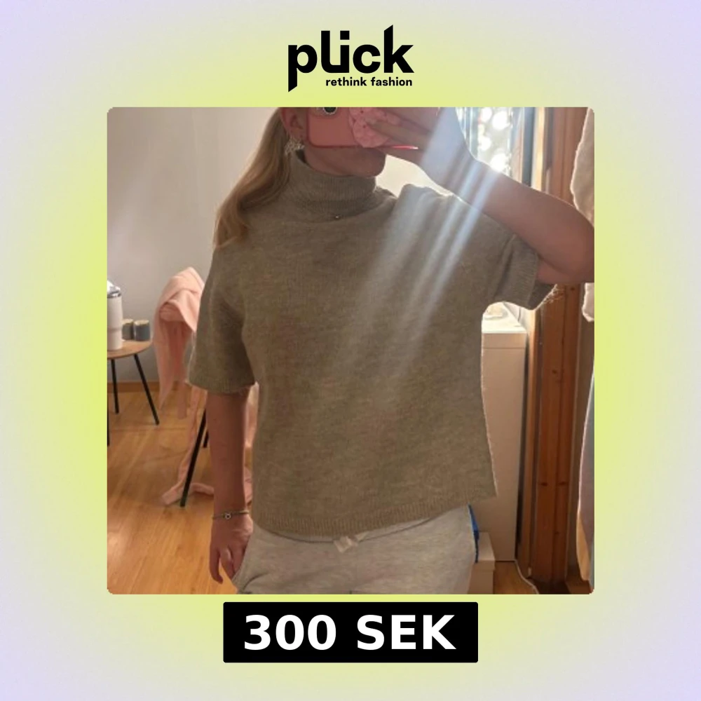 Säljer en beige polotröja med korta ärmar. Tröjan har en loose passform och är stickad material.