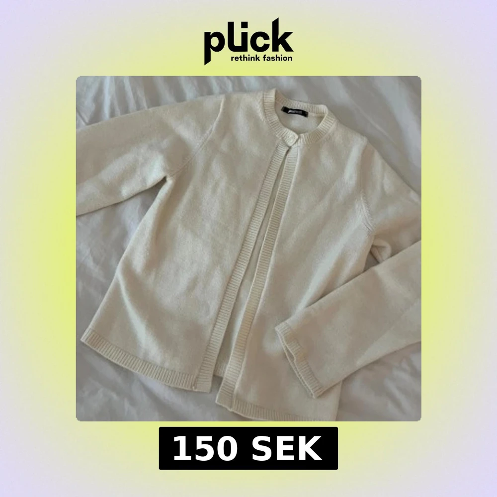 Superfin krämvit kofta från Gina Tricot i storlek XS. Koftan är stickad med ribbade kanter och har en enkel, stilren design med rund halsringning och knapp upptill. Perfekt att slänga över en topp när det blir kyligt.