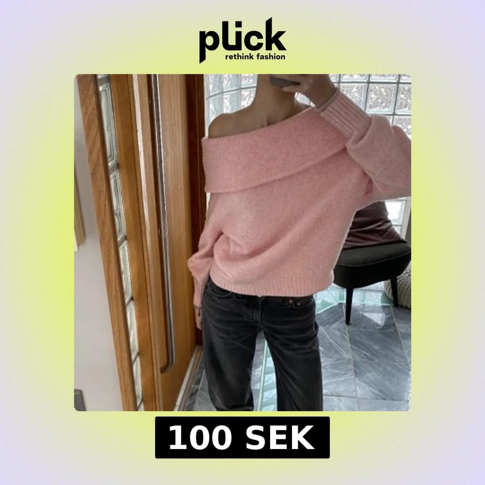 En rosa stickad tröja som är off shoulder. Fint skick, storlek xs.