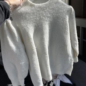 Vit stickad tröja i bra skick! Jättefin modell med lite puffiga ärmar!! Från Bruuns Bazar, köpt för 1299kr