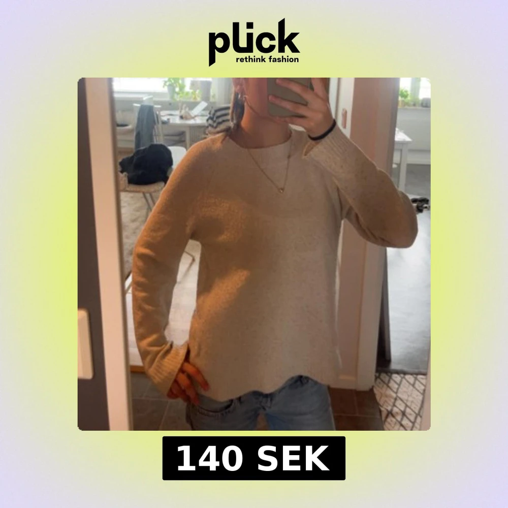 Mysig beige stickad tröja med rund halsringning och långa ärmar. Tröjan har ribbade muddar vid ärmslut och nederkant, perfekt för lager-på-lager och chill vardagsstil. Passar dig som gillar enkel och clean look. Är lite nopprig men annars väldigt fin❤️