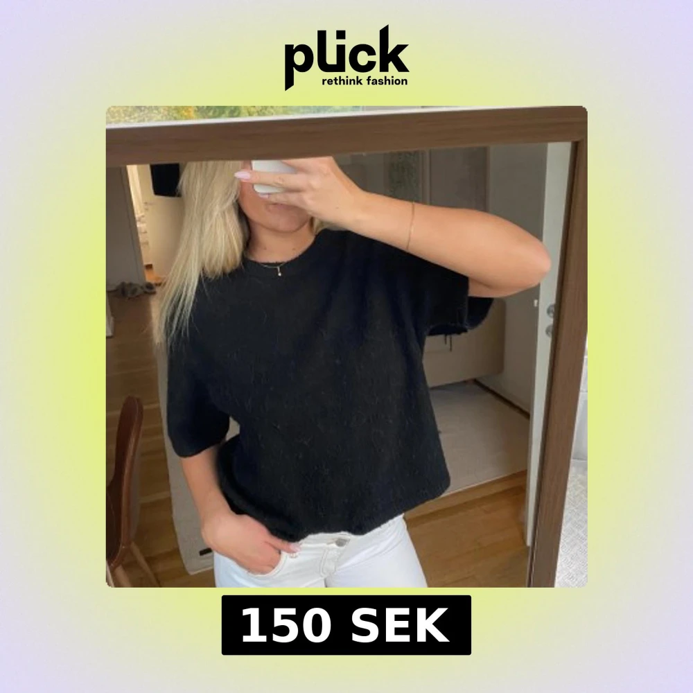 En svart stickad tröja med korta ärmar och rund hals. Tröjan har en lite boxig och loose passform, perfekt att styla med jeans eller kjol. Mjuk och skön känsla, passar både till lager-på-lager och som den är.