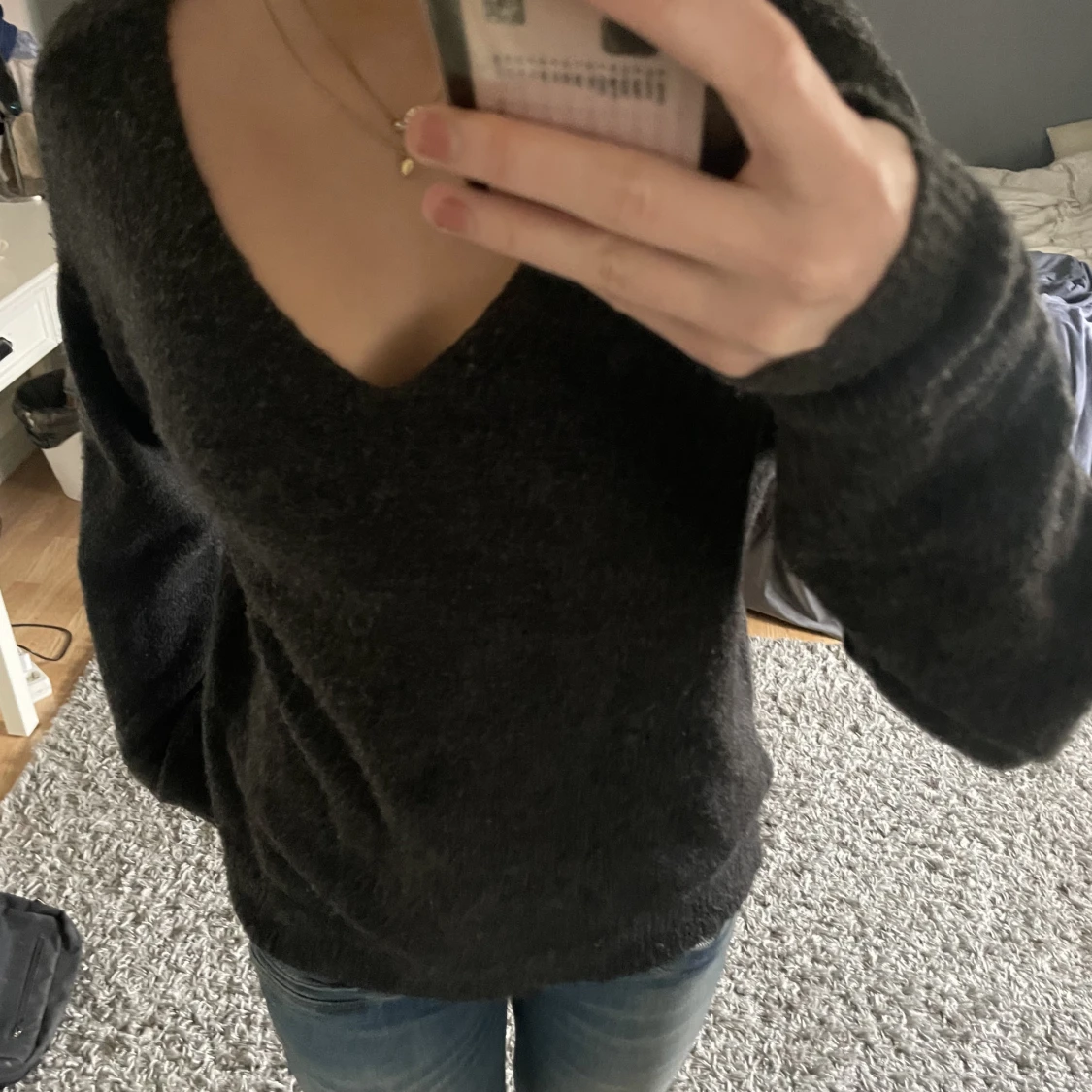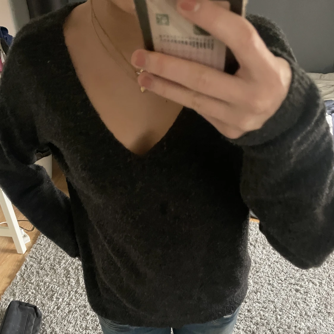 Fin mörkgrå stickad tröja som är v ringad. Näst intill oanvänd!