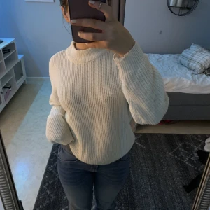 En vanlig stickad tröja i vit, den har jag använt några gånger i vintras men Inge mer. De finns ingen tråd som har åkt upp. Perfekt för att hålla dig varm nu när hösten är påväg. Den är i storlek xs men sitter inte för tajt 👌🏻