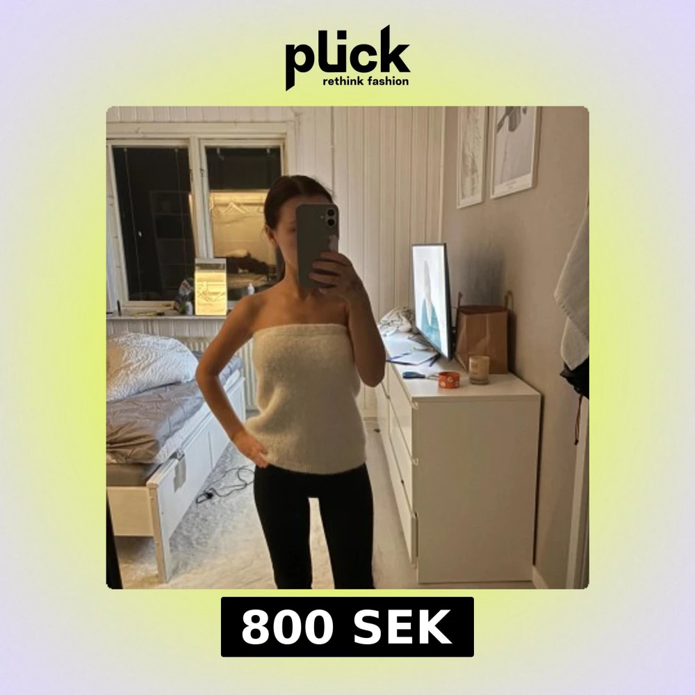 Säljer en supermjuk och fluffig vit stickad tubtopp. Toppen är axelbandslös och har en enkel, rak form som sitter snyggt över överkroppen. Perfekt för dig som gillar minimalistisk stil och vill ha något bekvämt men ändå trendigt.