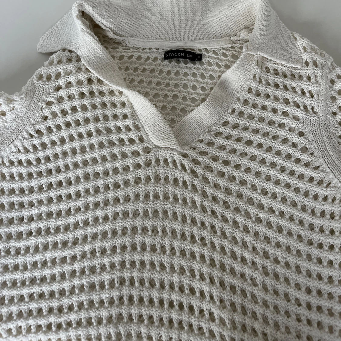Ihålig vit stickad tröja med krage. 💞