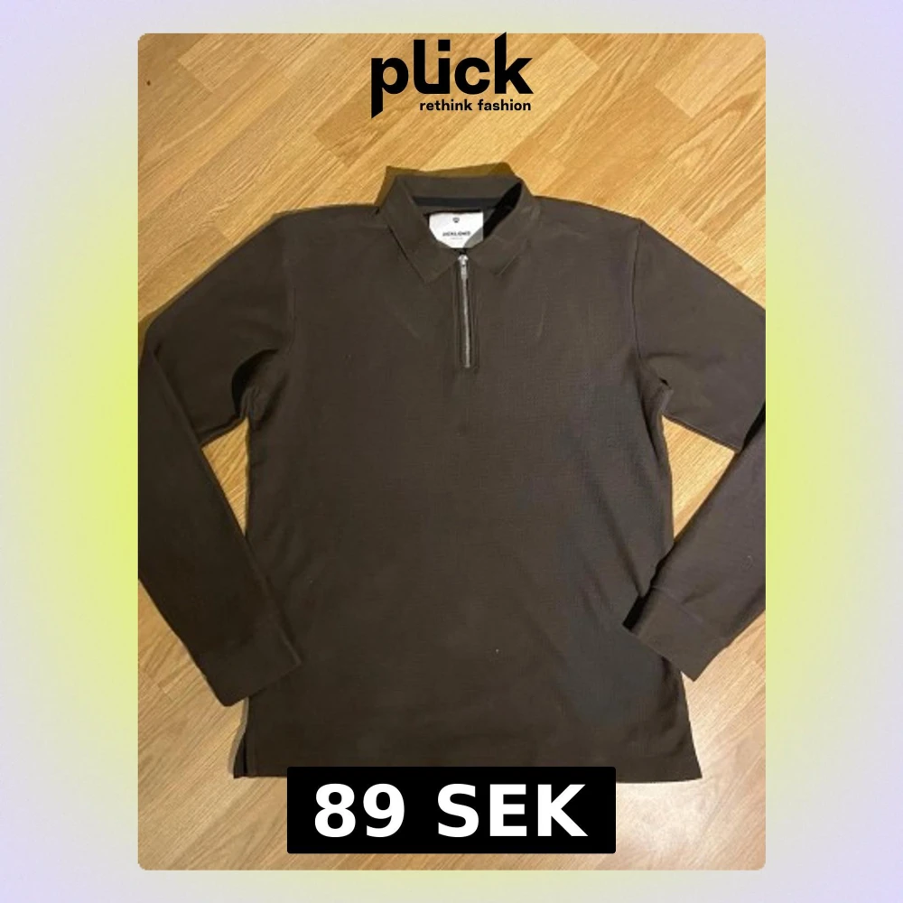 Mörkbrun långärmad pikétröja från Jack & Jones med krage och half zip-dragkedja framtill. Tillverkad i mjuk bomull med diskret struktur. Perfekt till jeans för en clean look.