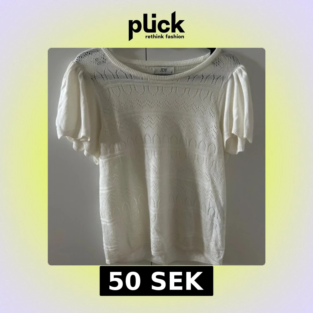Supersöt vit stickad blus från JDY med kort puffärm och rund halsringning. Blusen har ett genombrutet mönster och är gjord i ett mjukt stickat material som känns luftigt och fräscht. Perfekt att styla med jeans eller kjol för en chill look.