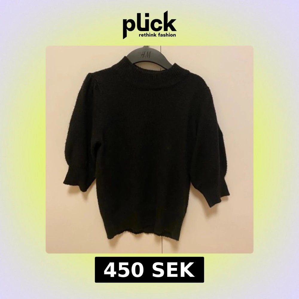 Svart stickad tröja från JDY med halvpolo och kortare puffärmar. Tröjan har ribbade muddar vid hals, ärmslut och nederkant. Bra skick!