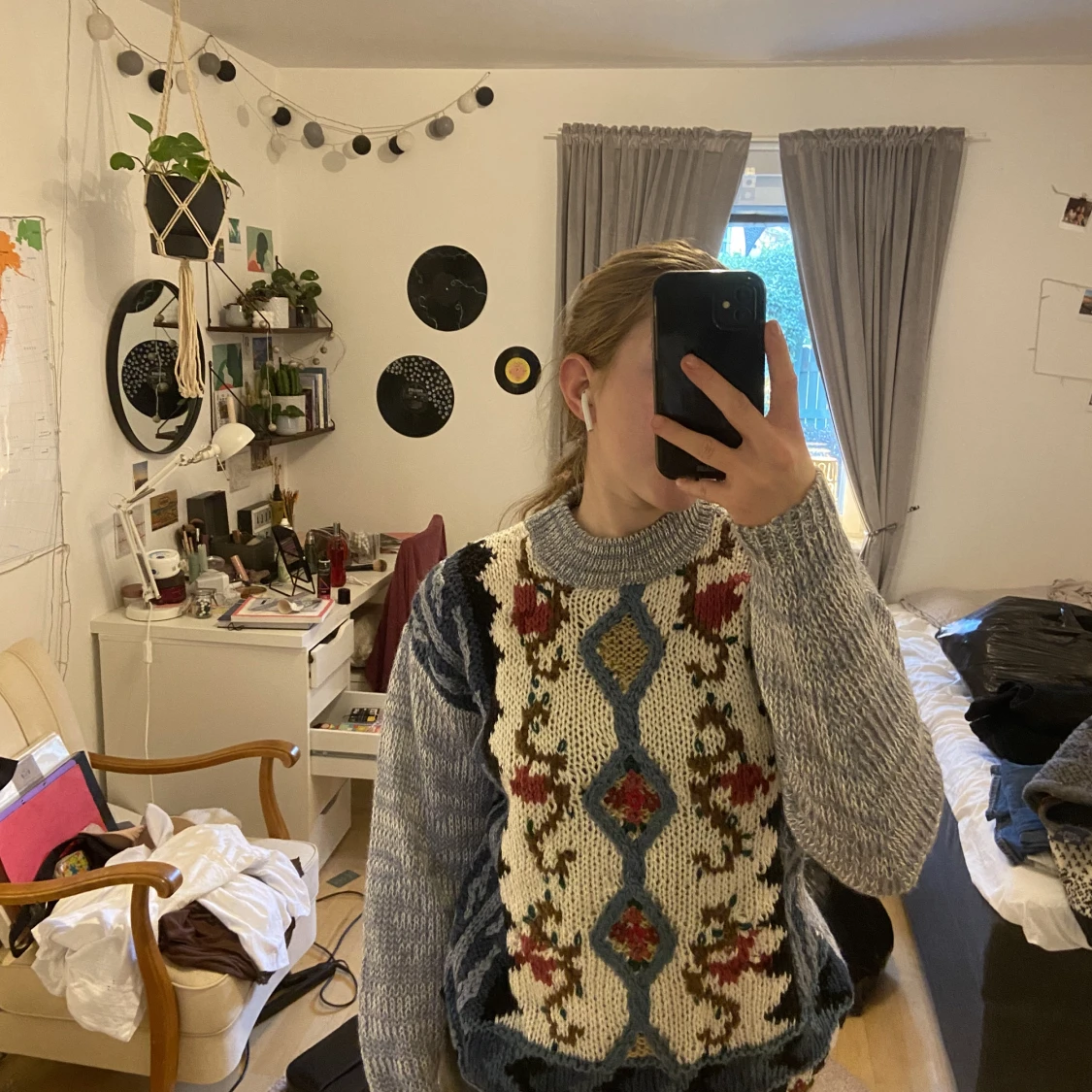 Stickad tröja, köpt på second hand och knappt använd, står S men den är ganska stor i storleken, jag har vanligtvis s-m
