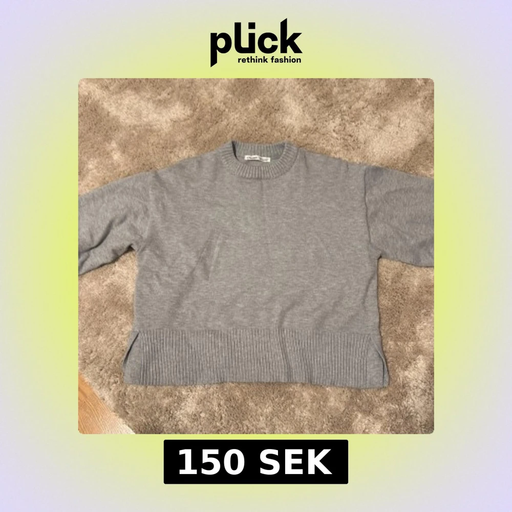 Säljer en grå stickad tröja från Pull&Bear i storlek XS. Tröjan har en rund halsringning, ribbade muddar vid hals, ärmslut och nederkant samt slitsar på sidorna. Perfekt för dig som gillar enkel och clean stil.