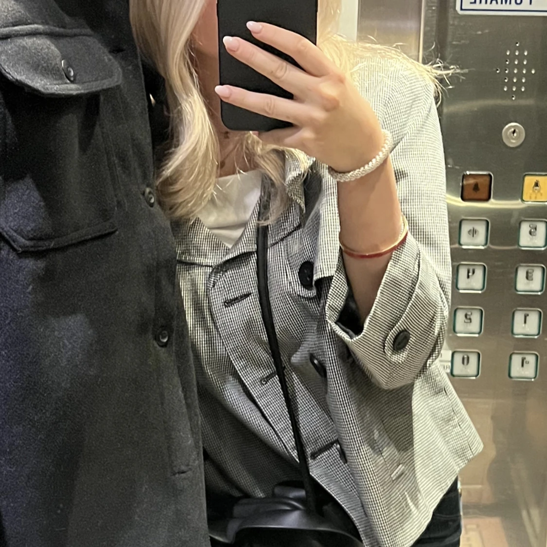 Så snygg svart vit lite längre än trekvartsärmad jacka/kofta!!! endast använd vid ett tillfälle🥰 Skulle säga stl S/M!