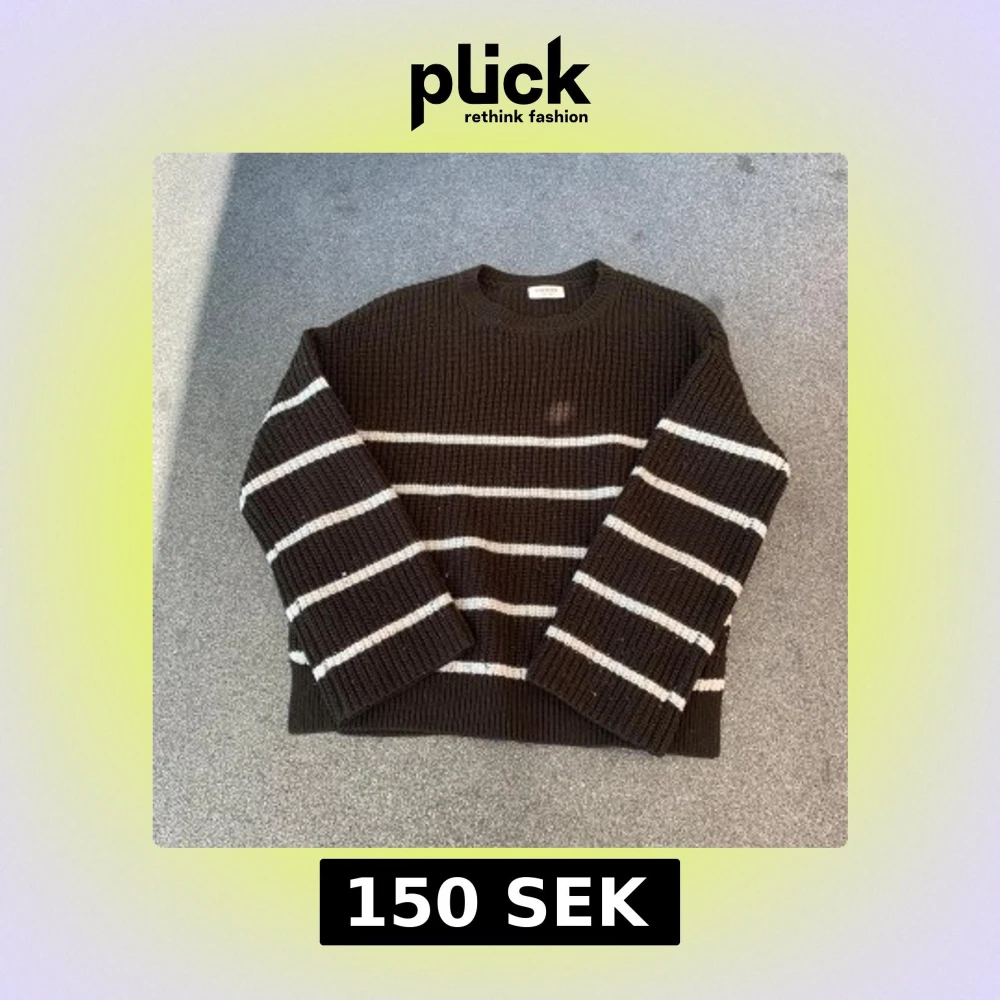 Mysig stickad tröja från Kappahl i mörkbrunt med vita horisontella ränder. Tröjan har en klassisk rund halsringning och långa ärmar. Perfekt för lager-på-lager och chill dagar. Ribbstickad struktur ger en skön och avslappnad vibe.