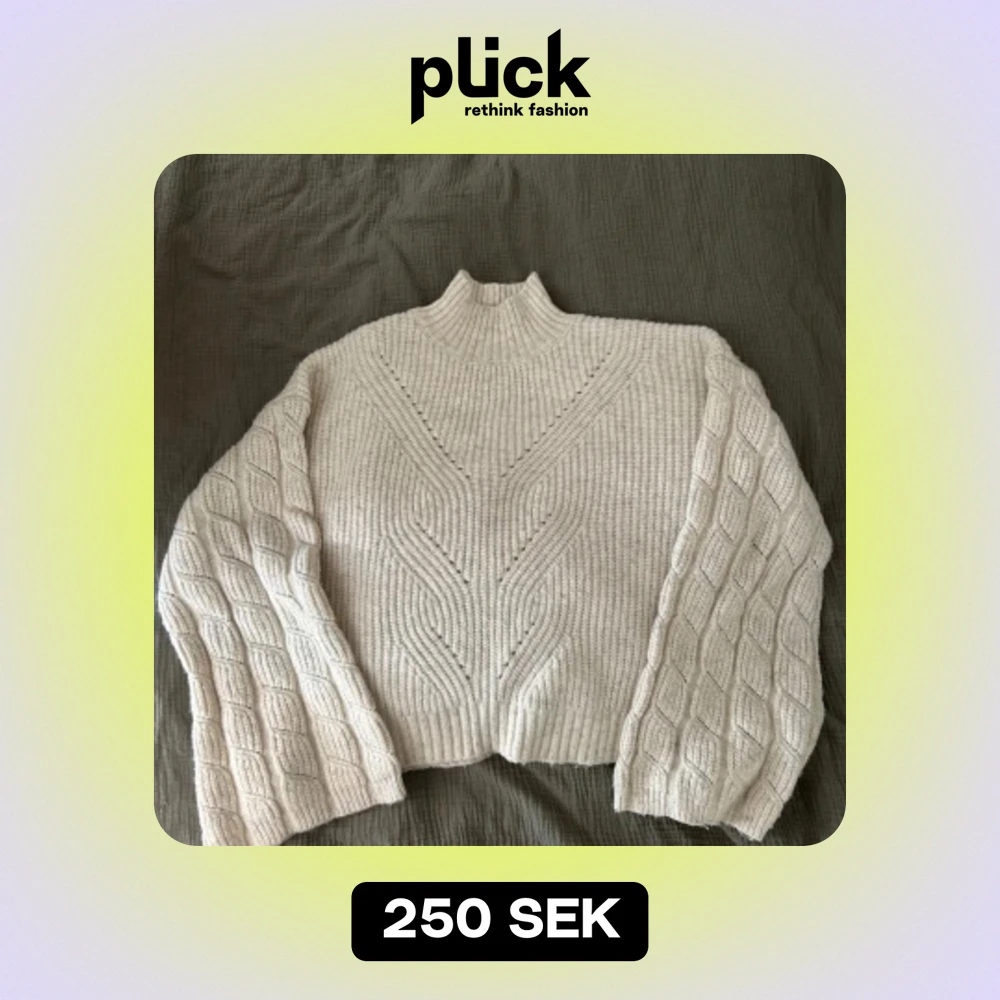 Säljer en supermysig vit stickad tröja med ett snyggt lmönster på ärmarna. Den är i nyskick, utan prislapp. Storlek M.