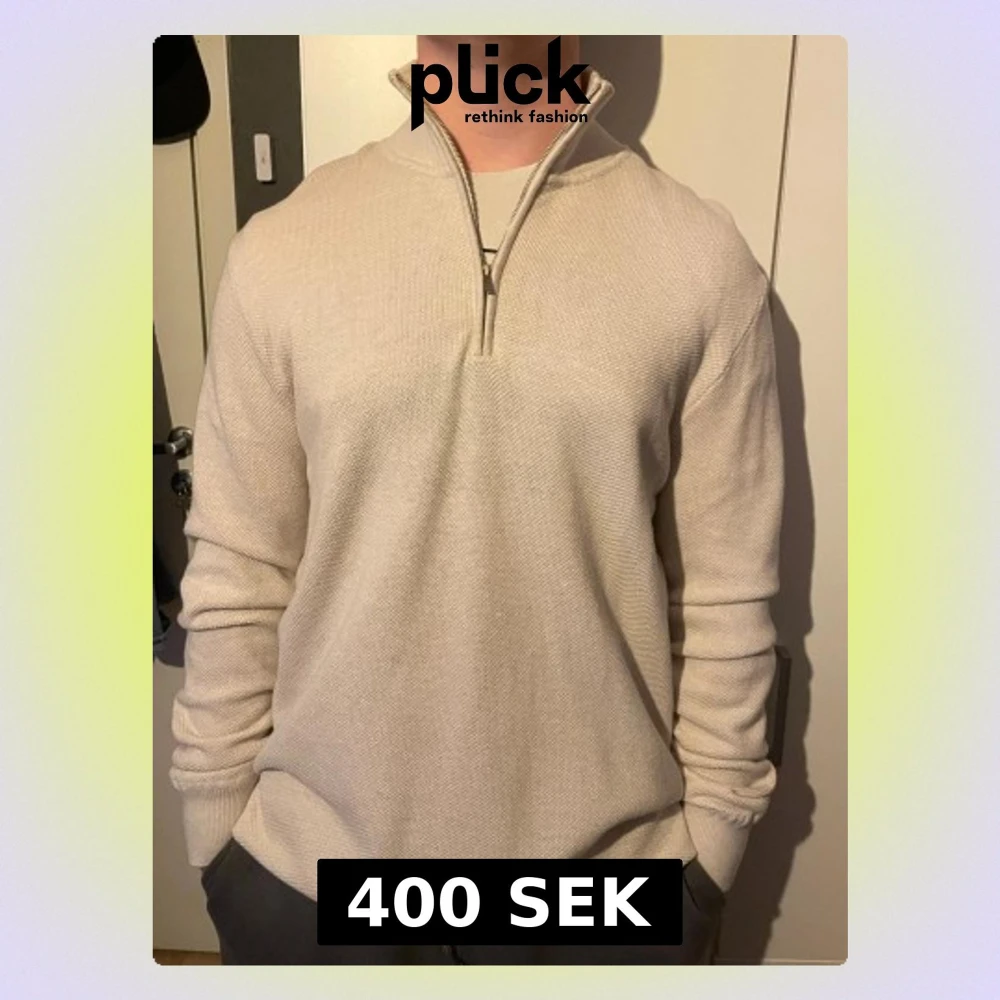 Beige stickad half zip-tröja  - 0 Beige stickad half zip-tröja  - 1 Beige stickad half zip-tröja  - 2
