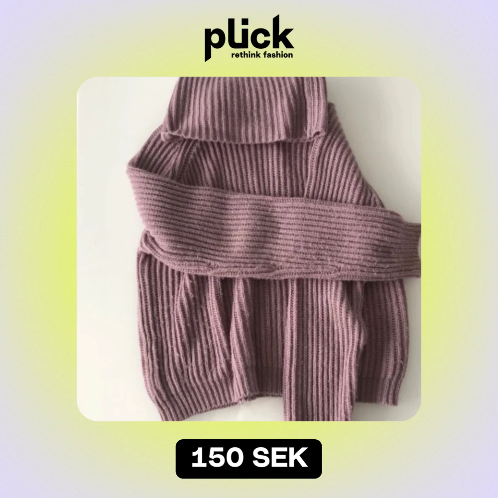 Säljer en supermysig lila stickad polotröja. Den är perfekt för kalla dagar med sin höga krage och långa ärmar. Tröjan är ribbad och har en lös passform som gör den extra bekväm. Perfekt för höst och vinter! 💜
