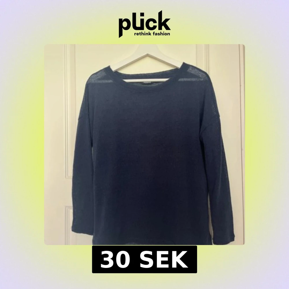 Snygg mörkblå stickad tröja från KappAhl i storlek XS. Tröjan är tunn och lite transparent, med rund hals och långa ärmar. Perfekt för lager-på-lager och chill stil. Enkel design utan mönster eller detaljer, passar dig som gillar basic och comfy. Oversized