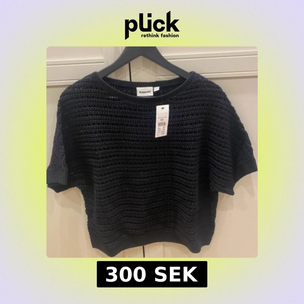 Säljer en svart stickad topp från Kappahl i storlek XS. Toppen har korta ärmar och ett snyggt hålmönster som ger en cool och luftig känsla. Rund halsringning och loose passform gör den enkel att styla. Perfekt för dig som gillar stickade detaljer.