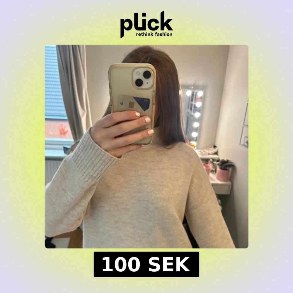Mysig beige stickad tröja från Kappahl i storlek XS. Tröjan har en högre hals, ribbade muddar och avslut, samt en loose fit som ger en chill vibe. Perfekt att slänga på sig när det är kallt ute.