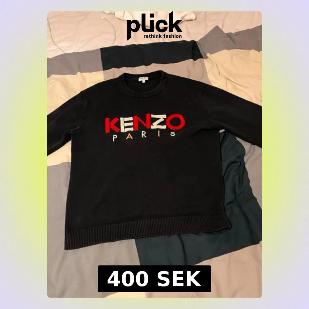 Säljer en svart tröja från Kenzo i storlek S. Tröjan har en broderad Kenzo Paris-logga i rött, vitt och gult framtill. Tillverkad i 100% bomull med ribbade muddar vid hals, ärmslut och nederkant. Perfekt för dig som gillar streetwear och vill sticka ut.