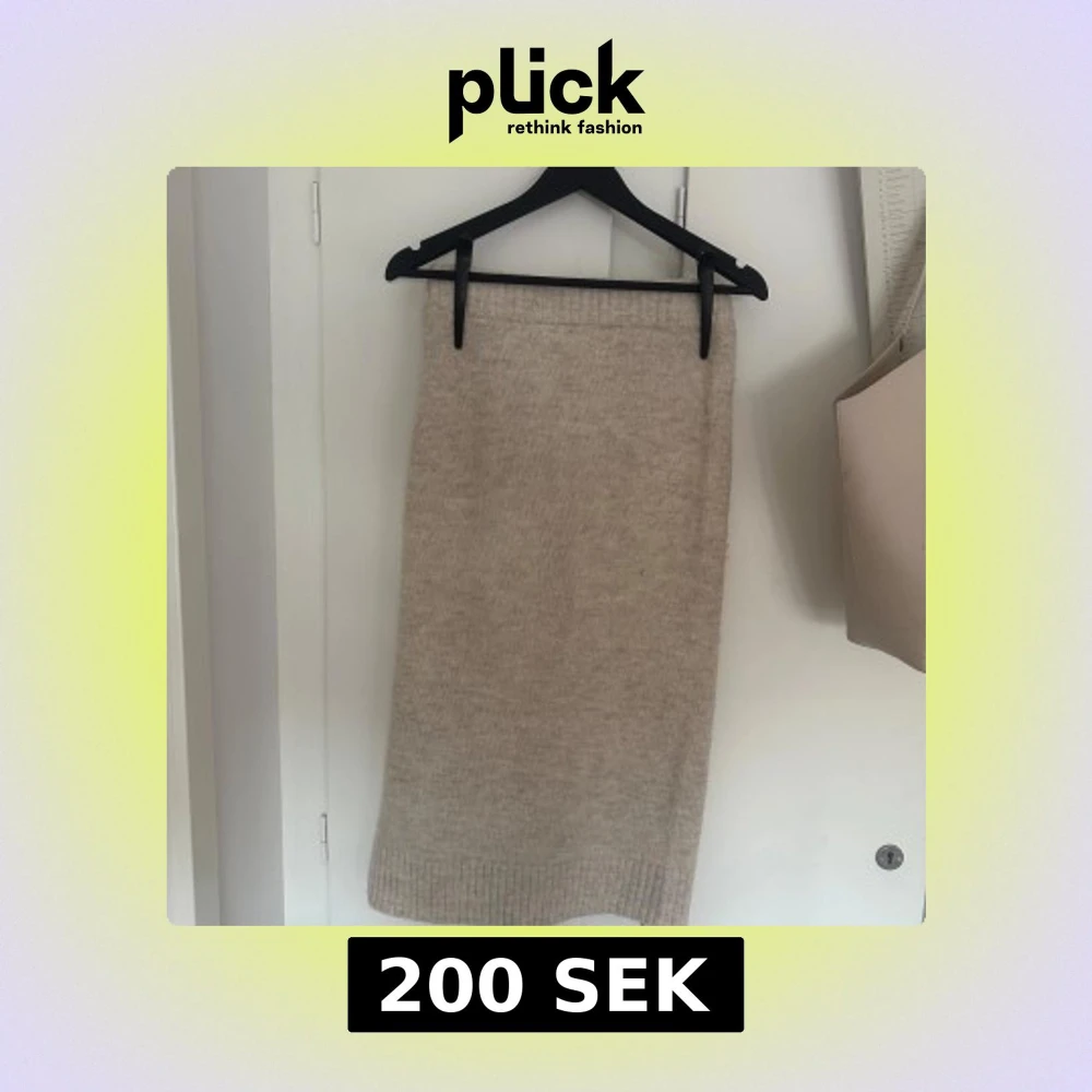 Mysig beige stickad kjol frĂ„n VILA med ribbad kant nertill och en liten slits pĂ„ sidan. Fint skick och inte anvĂ€ndigt slitit, skriv vid intresse eller funderingar!đ