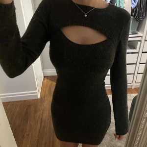 Jättefin och såå bekväm mörkgrå stickad klänning! Väldigt stretchig så passar nog allt från XS till liten L. Bra skick, använd fåtal gånger.