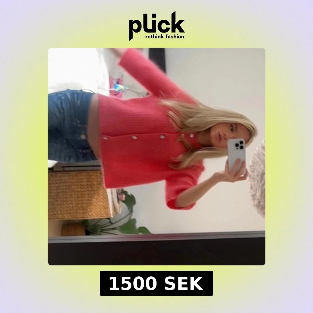 Superfin rosa stickad kofta med stora vita knappar och trekvartsärmar. Koftan har en loose passform och är croppad i modellen, vilket gör den perfekt att slänga över en topp. Mjuk och mysig, passar både till jeans och kjol. Köpte för 2000kr använd typ 3 ggr❣️