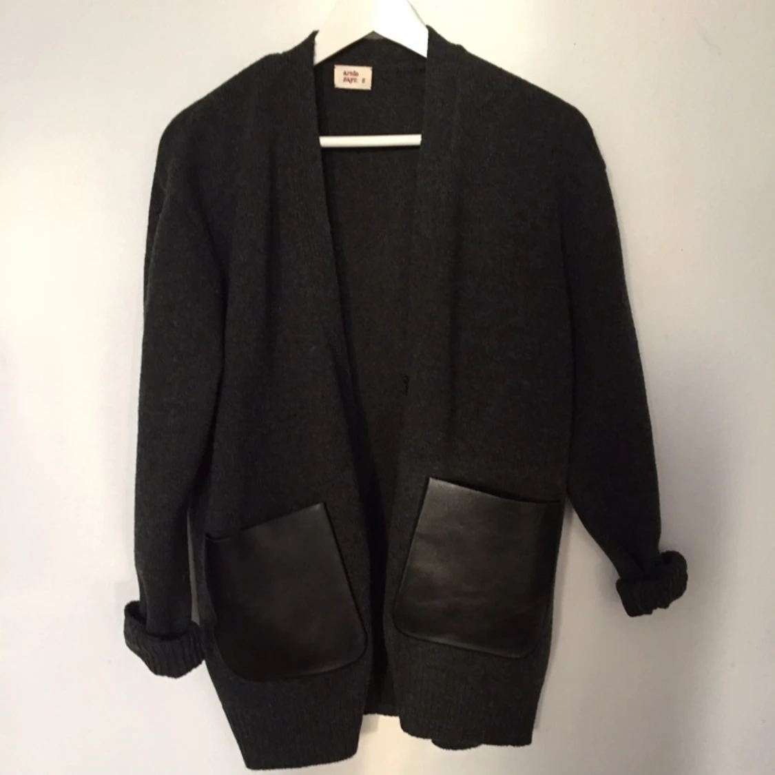 Säljer superfin mörkgrå kofta i 100% lammull från Arnie says. Använd endast ett fåtal gånger, i nyskick!
