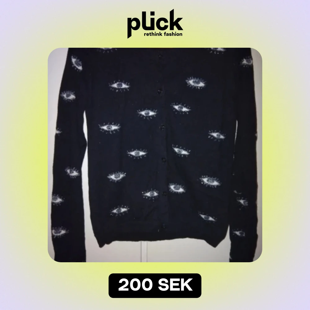 Kofta med ögon i glitter. Oanvänd. Stl S. 46kr i frakt.