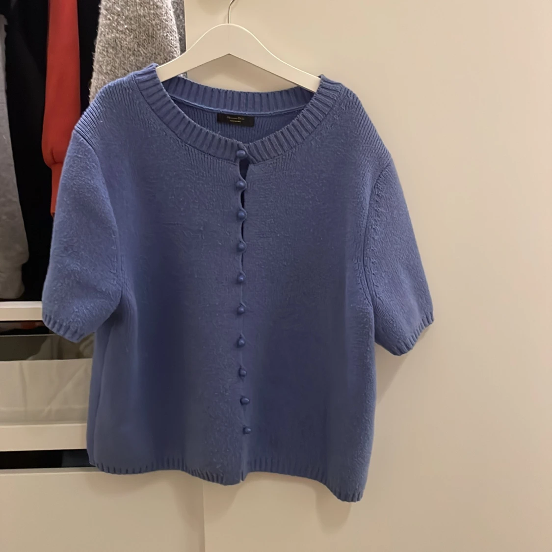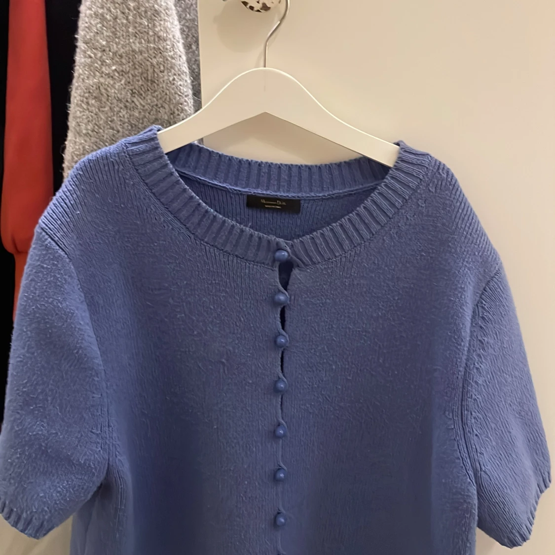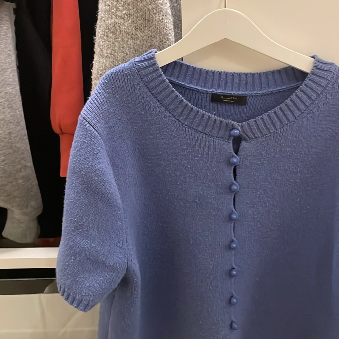 Mycket fin blå stickad kofta från Massimo Dutti, mycket bra skick!