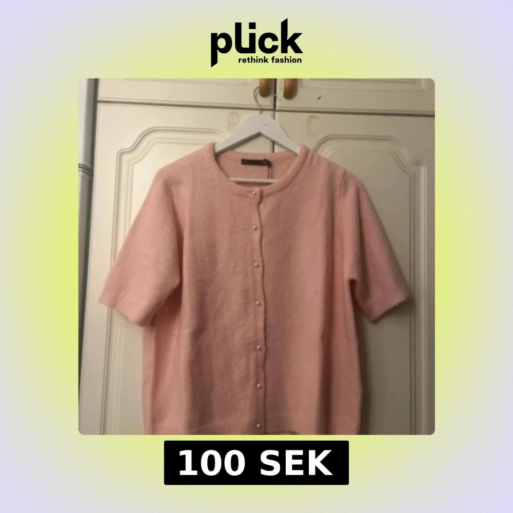 Supersöt ljusrosa kofta från 157 med korta ärmar och pärlknappar framtill. Koftan är stickad och har en rund halsringning. Perfekt för lager-på-lager och ger en mjuk, feminin vibe till din outfit.