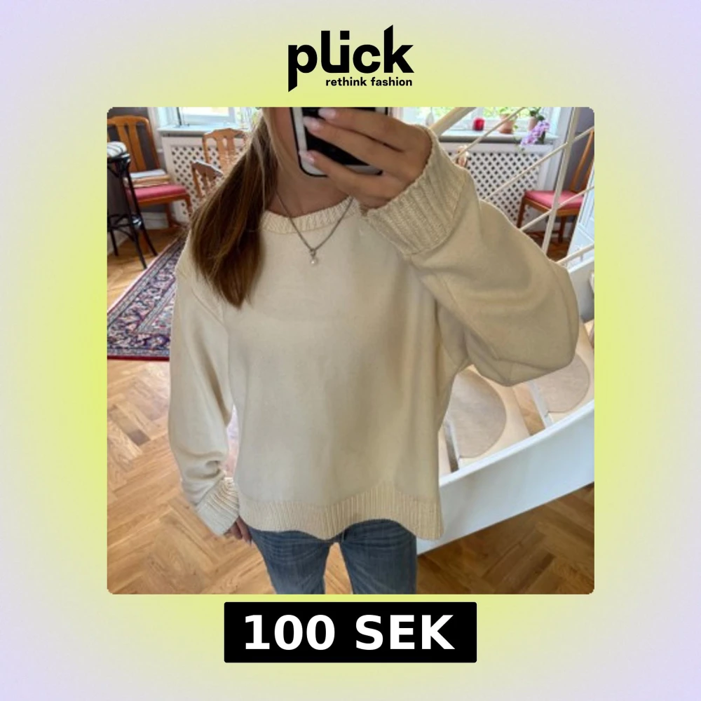 Vit/beige tröja från Zara. Tröjan är i storlek L men passar bra på mig som vanligtvis har storlek XS eller S. Tröjan har ribbade muddar vid ärmslut, nederkant, axlar och halsringning. Perfekt för en avslappnad höst look💖💖tröjan har en diskret fettfläck i nederkanten som syns på första bilden och sista bilden.