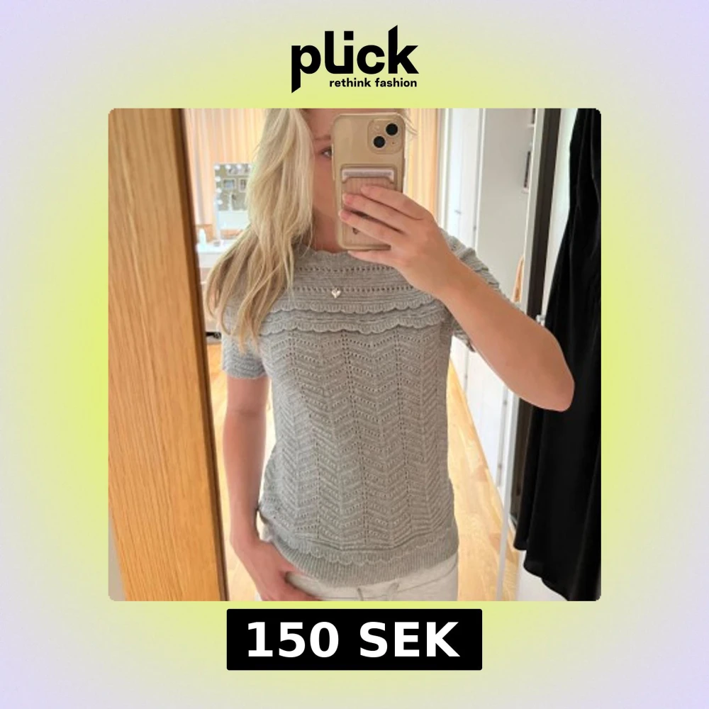 Ljusgrå kortärmad stickad topp med snygga detaljer💕💕