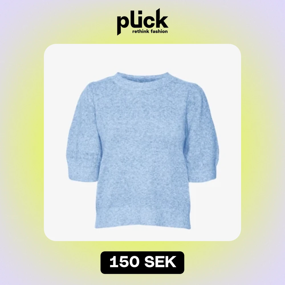 Blå kortärmad stickad tröja ifrån vero Moda i storlek S. Noppring på ryggen därav priset.