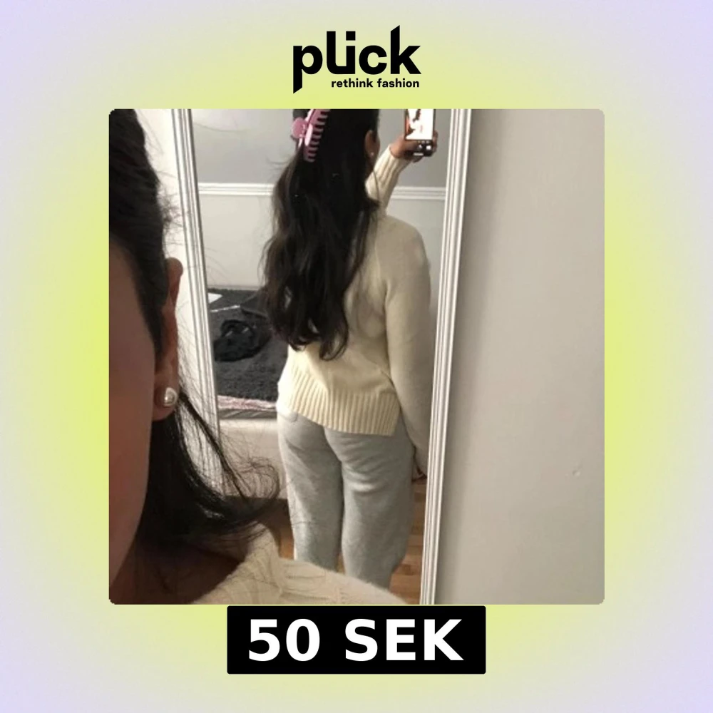 Mysig krämvit stickad tröja med rund hals och ribbade muddar vid ärmslut och nederkant. Tröjan har en klassisk passform och är perfekt för kyligare dagar. Säljer då jag inte använder längre. Användt den minst 2 ggr.