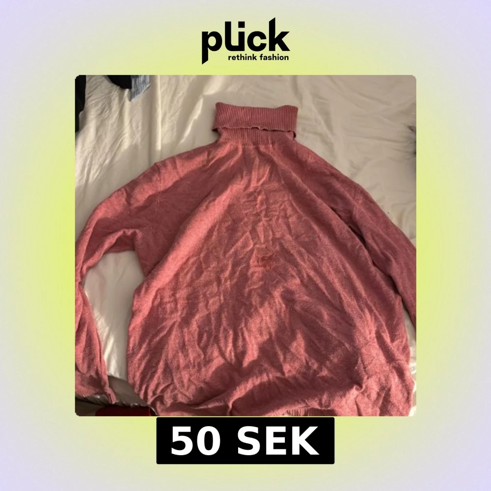 Mysig rosa polotröja med bred, ribbad krage och långa ärmar. Tröjan har en loose passform och är tillverkad i ett mjukt stickat material som känns skönt mot huden. Perfekt för att hålla värmen under kyliga dagar.
