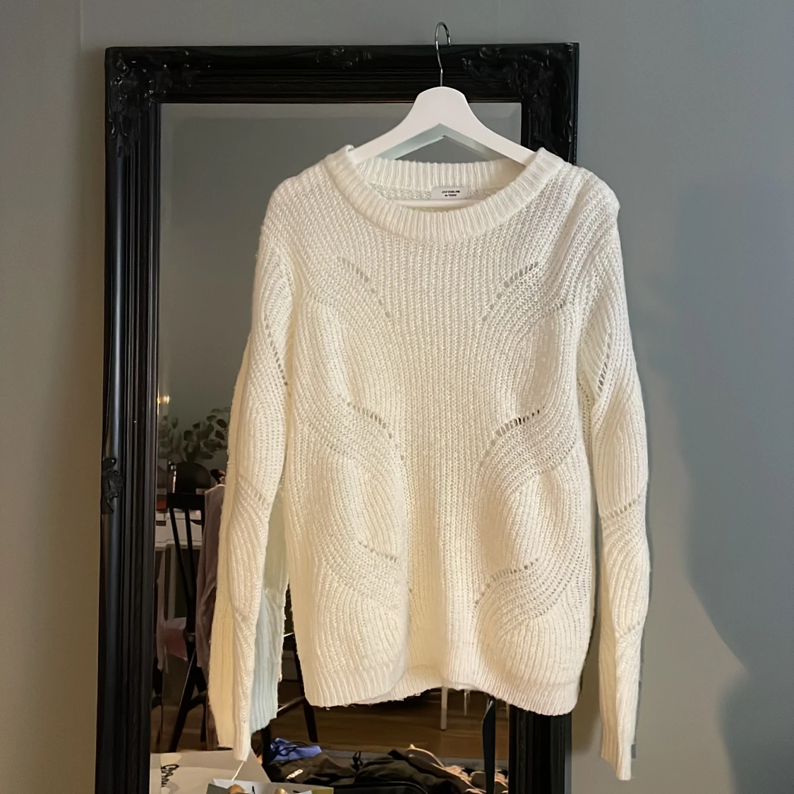 Superfin vit stickad tröja. Stl L men passar mig som har S. Säljer pga har för många vita stickade tröjor.